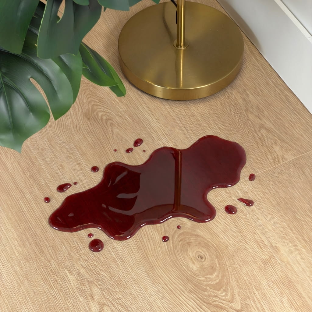 Whether it’s drink spills, muddy footprints, or kitchen splashes, the floor remains protected for short-term exposure — making it a smarter choice for busy households than standard laminate. Once cleaned and dried, the planks retain their shape and appearance, with no bubbling or edge lift when spills are addressed within the rated timeframe.