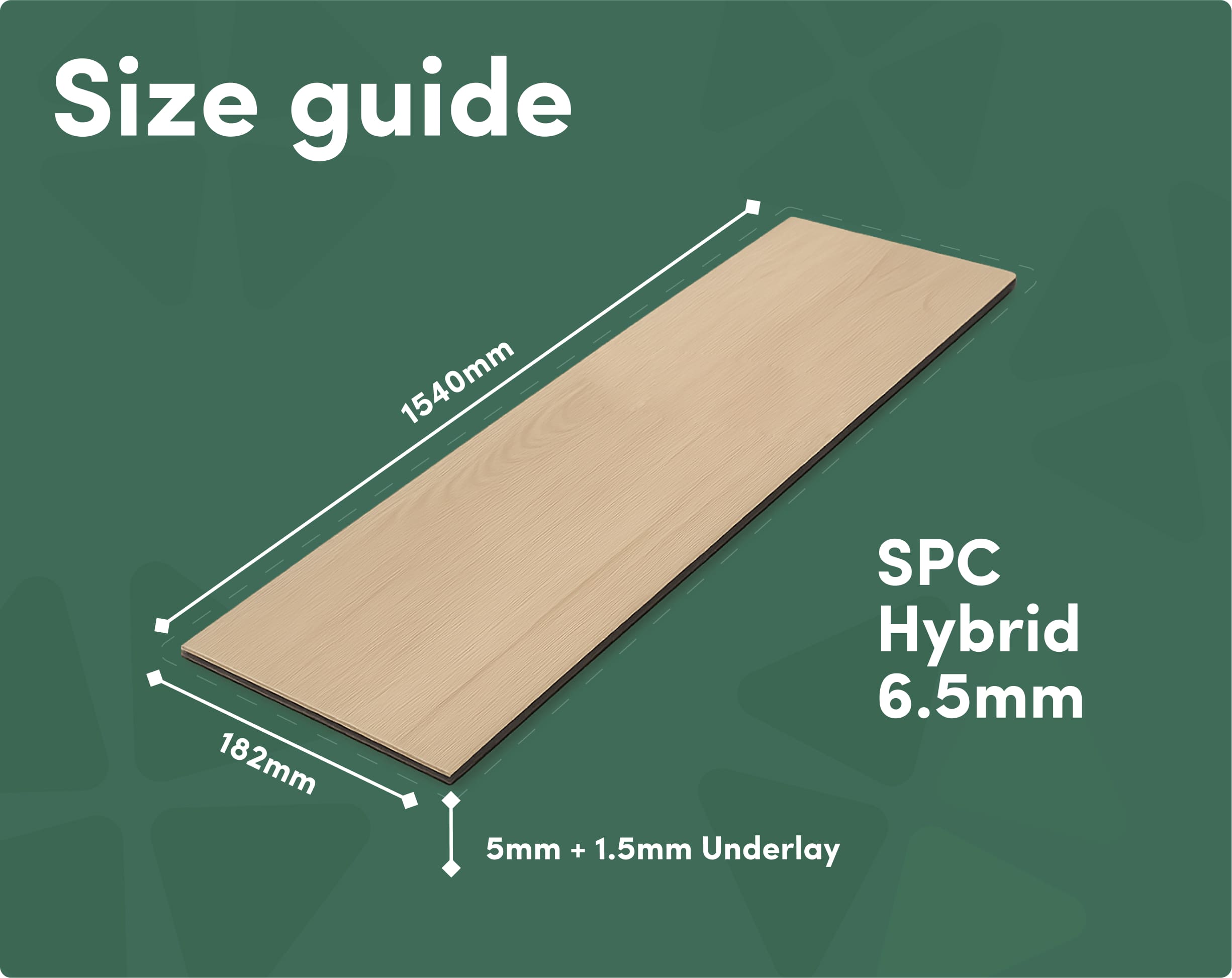Our 6.5mm hybrid flooring looks as real as it gets. With a choice of 12 colours ranging from light to dark, you’ll find the perfect match for any space. Every plank is built with precision, giving you a high-quality finish without the high-maintenance timber hassles.