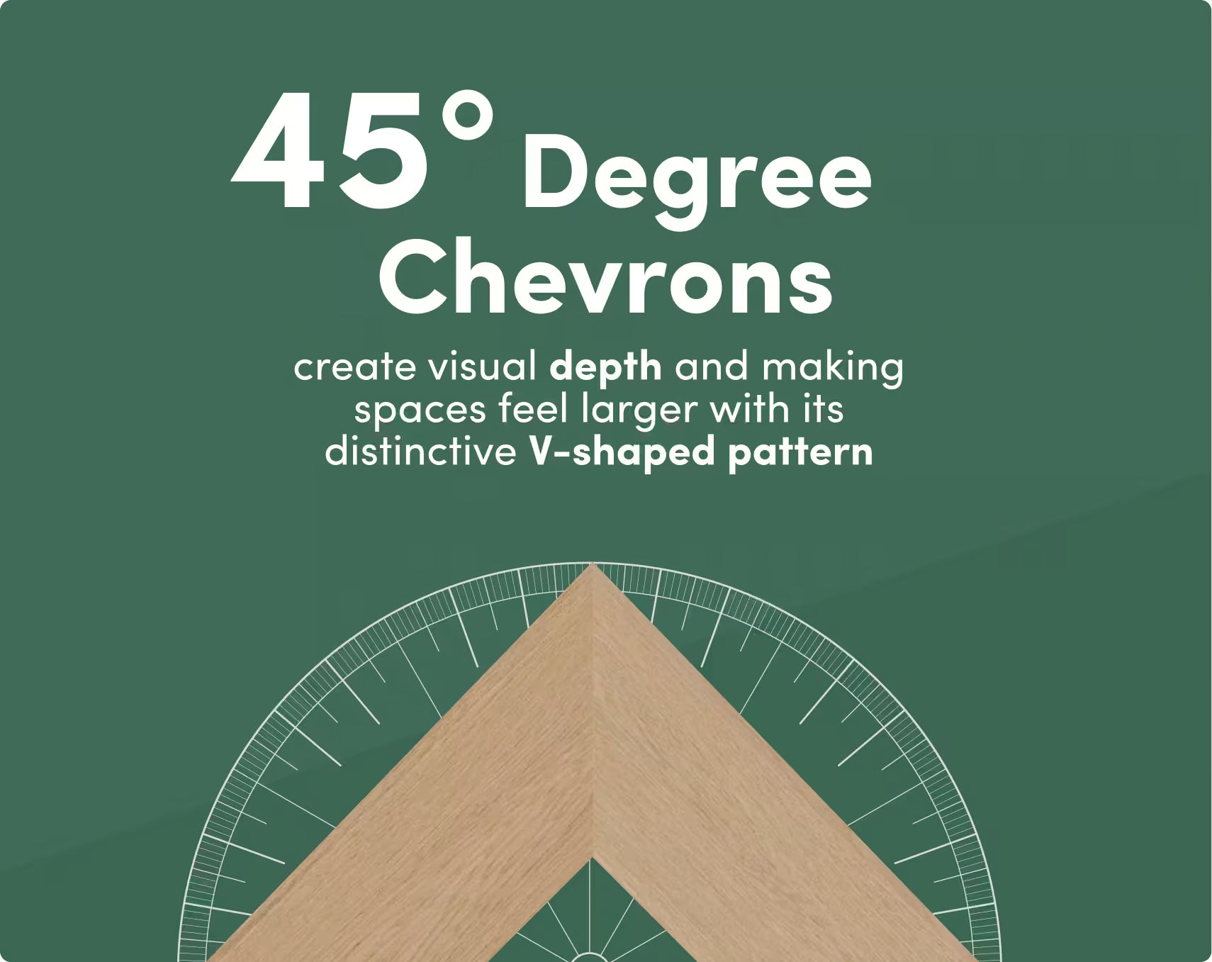 Chevron engineered timber is also easier to install than people expect. Most ranges are designed for direct glue-down, which gives a solid, quiet feel underfoot and helps lock the pattern in place, and many use a tongue-and-groove profile so each piece keys in neatly for a tight, consistent finish. And it’s not just for floors — the same boards can be used as a feature wall, so you can run chevron up a wall behind a bedhead, in an entry, or as a statement panel to match the flooring and tie the whole space together.
